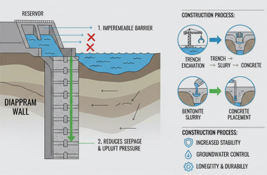 Services Our ServicesQuality Services Diaphragm Wall ConstructionDiaphragm walls are underground structural components utilized as permanent foundation walls. Basement ConstructionA spacious basements for residential, commercial, and industrial buildings. Metro SystemsDiaphragm wall construction are critical for the successful development of metro systems. Dam ReinforcementOur focus on durability ensures that these structures withstand the test of time and environmental challenges. Underwater ConstructionNavigating the complexities of underwater construction demands specialized skills and expertise. Industrial ConstructionFor specialized industry projects, diaphragm wall fulfils multiple purposes as per the requirement. Trust and WorthOur Clients